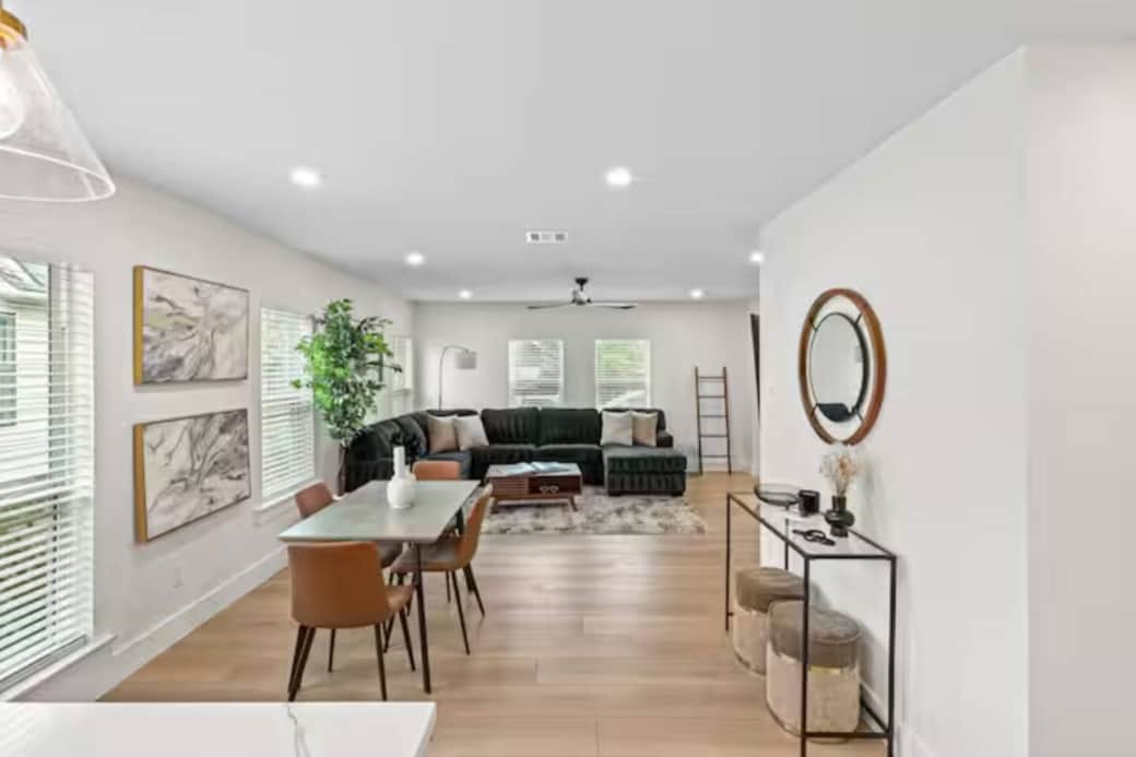 Feel the pulse of Dallas’ fall magic at Oak Cliff Oasis, a stylish 3-bedroom, 2-bath retreat on the first floor of a charming duplex in historic Winnetka Heights. With a separate unit upstairs, you’ll bask in privacy while diving into the heart of Oak Cliff’s soulful vibe—perfect for couples craving romance, families chasing adventure, or solo travelers seeking a cozy escape.